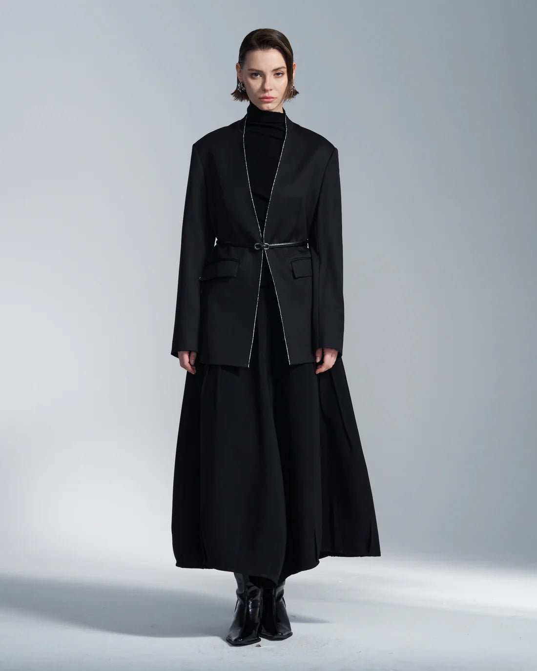 Wool Blazer With White Raw Edge