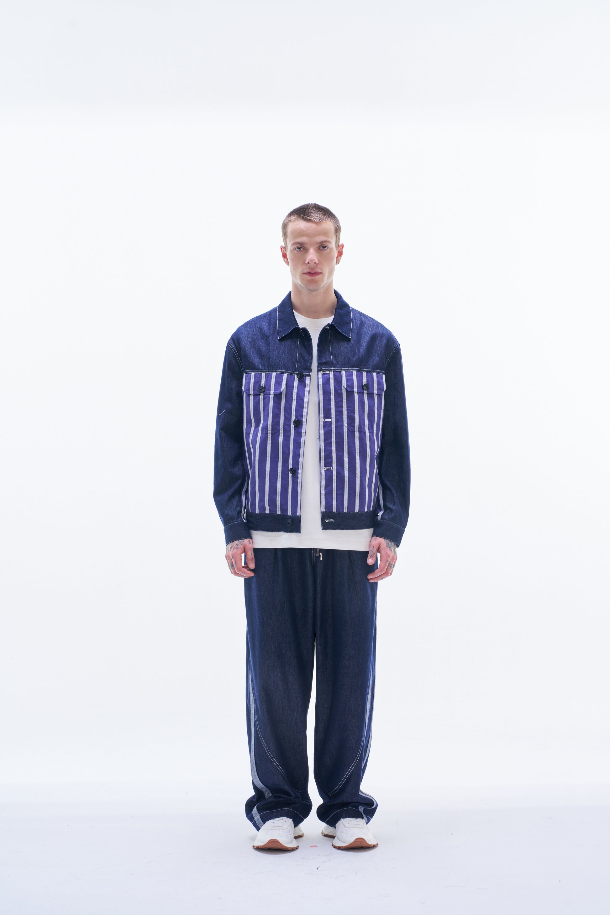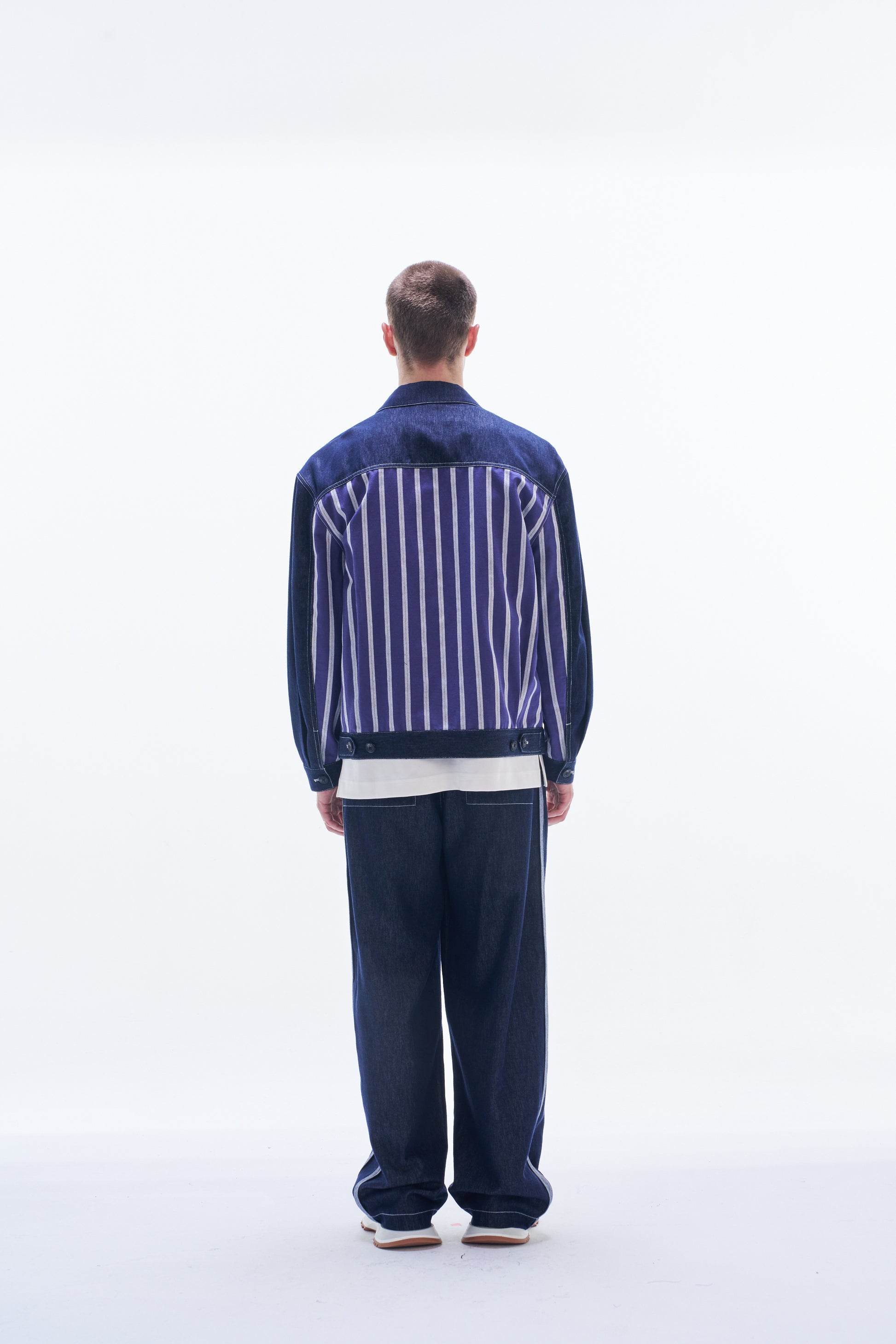 Denim Jacket Contract with Striped Linen